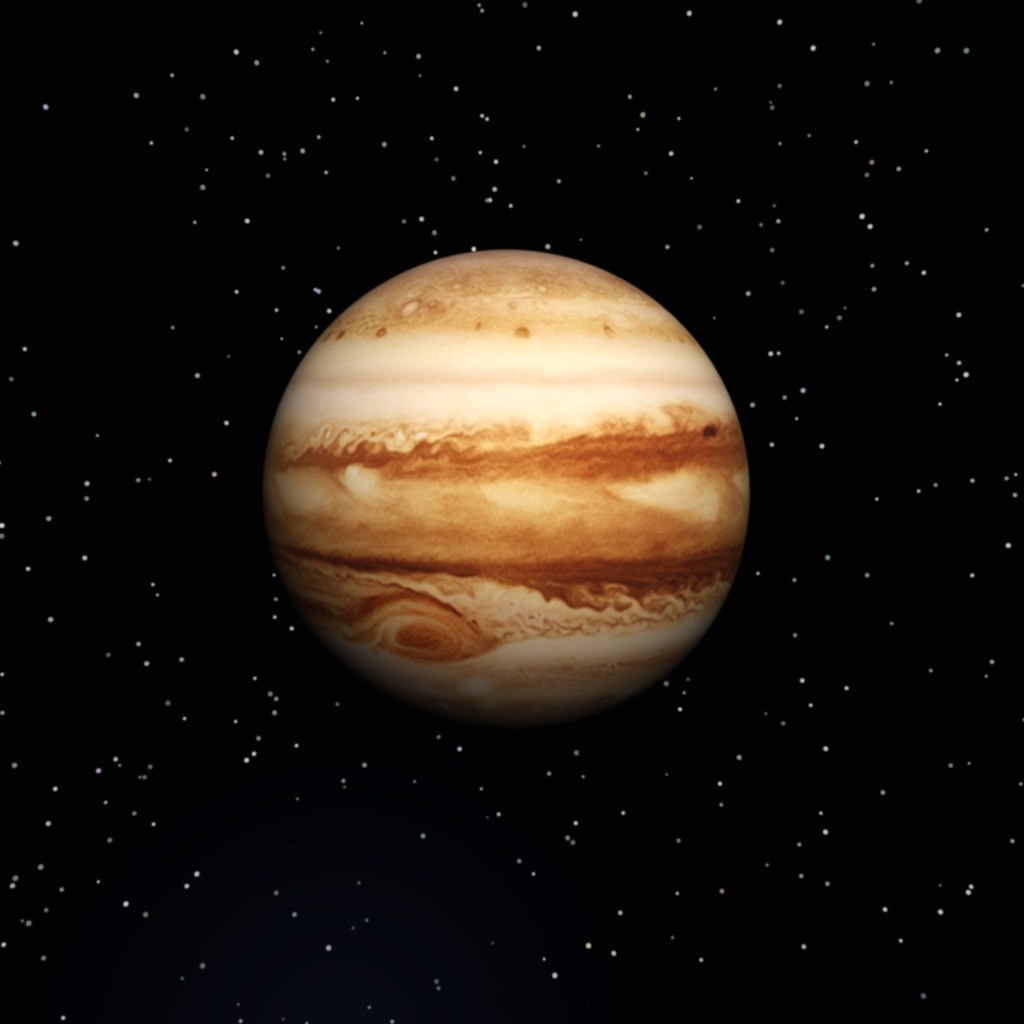 هــو الـكــوكب الأكــثر ضـخـامــةً فـي الــنــظـام الـشــمــســي والــخــامـس في تـرتيب المسافة عن الشمس، ويعد من أكثر الأجسام لمعاناً في الليل بعد القمر، والزهرة، والمريخ، كما أن لديه أقوى مجال مغناطيسي مقارنة بالكواكب الأخرى. ويستغرق دوران كوكب المشتري في مداره حول الشمس 12 سنة أرضية، كما يحتاج 10 ساعات ليدور دورة كاملة حول نفسه، أي أكثر من ضعف سرعة كوكب الأرض
